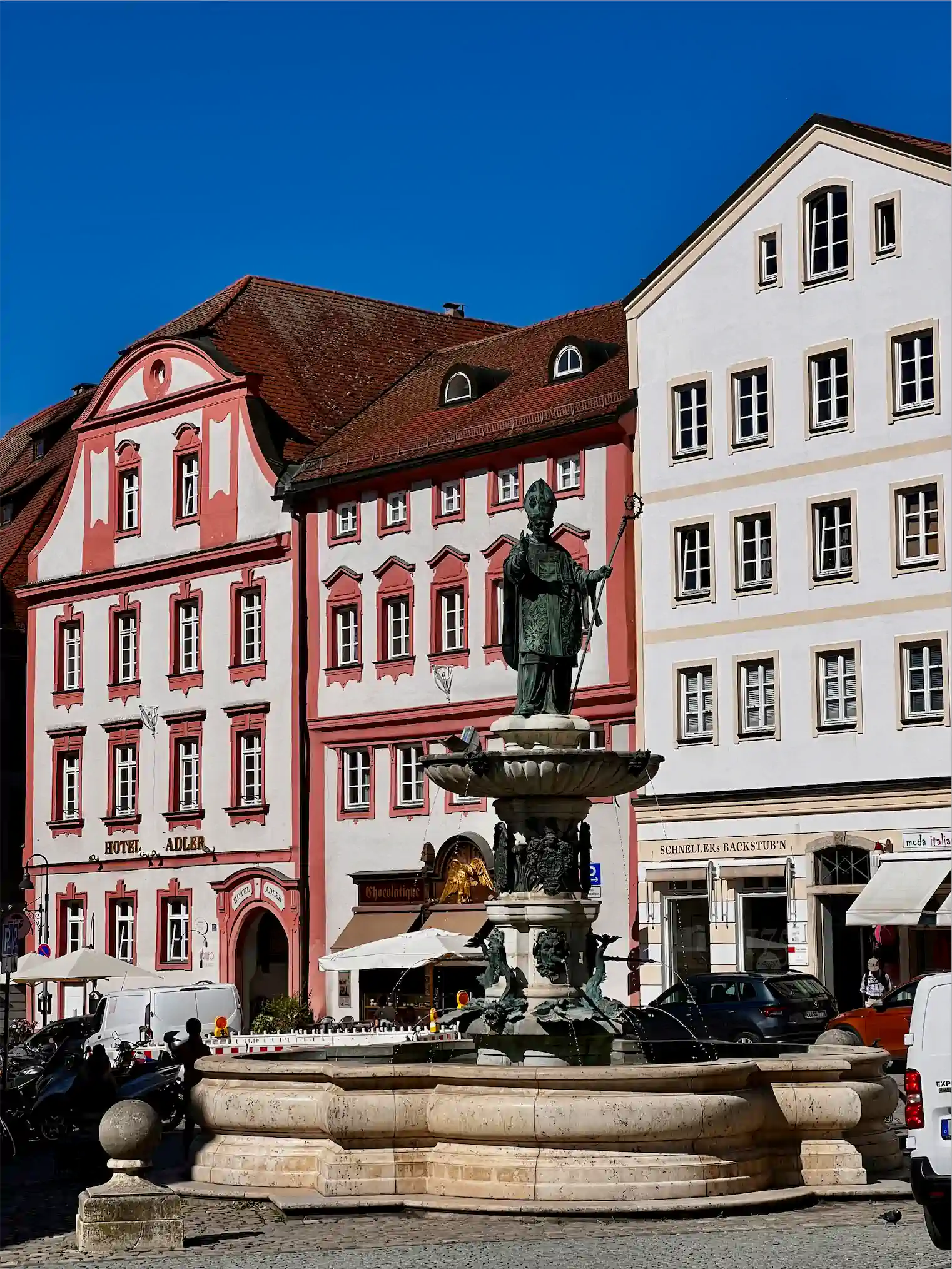 Die Häuser strahlen in warmen, bunten Farben in der Sonne, und auf den vielen Brunnen tummeln sich Putten und andere Wesen. Die ganze Stadt ist ein kleines Schmuckkästchen.