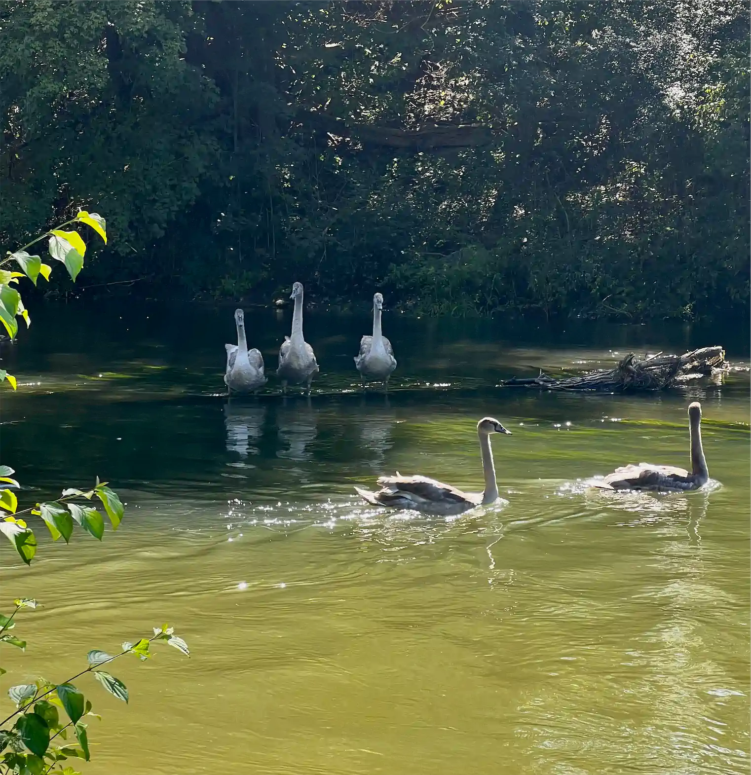 Unter dem großen Baum an der Brücke kann man wunderbar eine kleine (Picknick)Pause machen. Dann rollt man gemütlich weiter Richtung Eichstätt. Kurz bevor man die Stadt erreicht, hatte ich wieder Spaß. In der Altmühl war eine große Gruppe Jungschwäne, die lautstark im Wasser am toben waren.