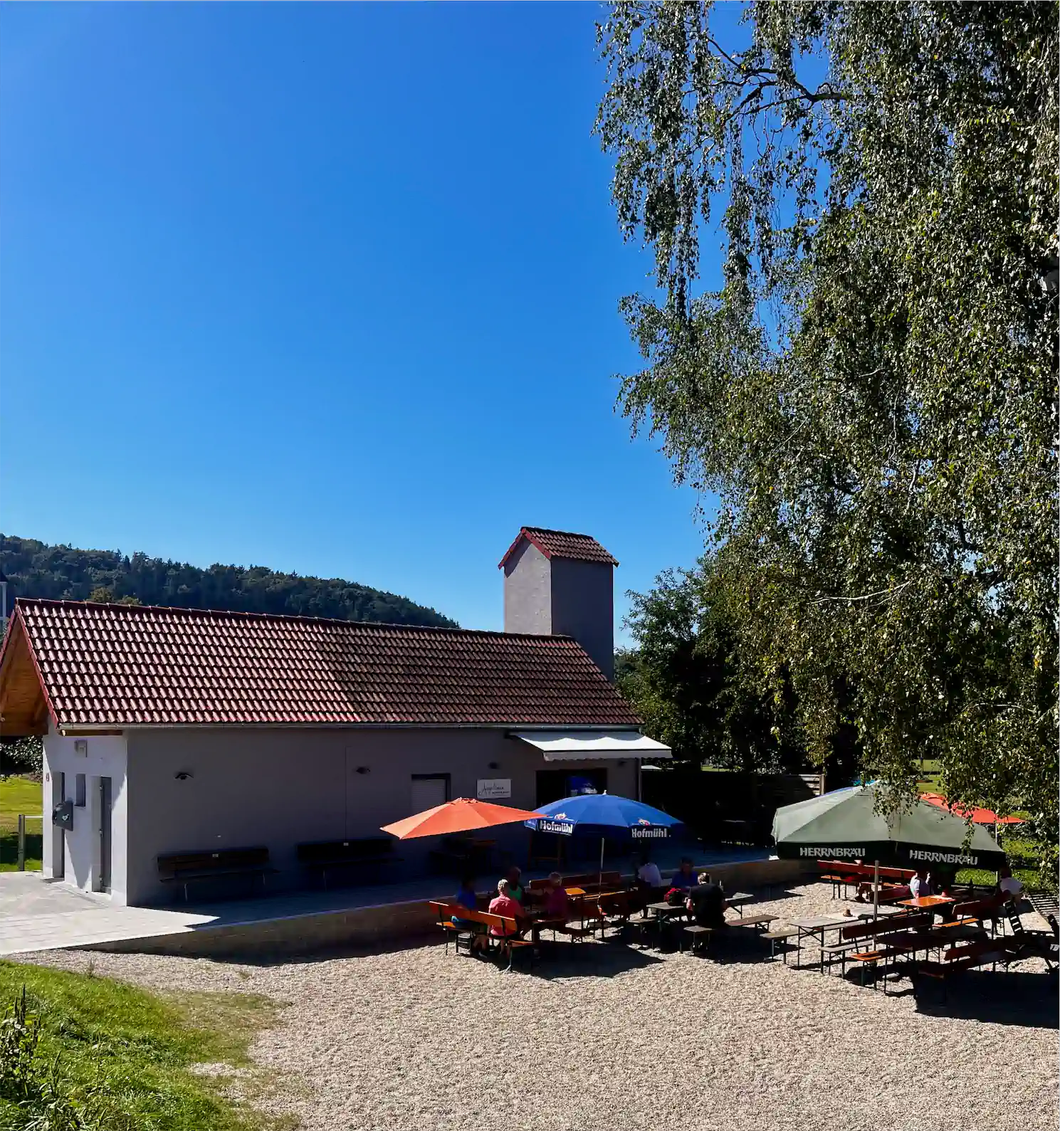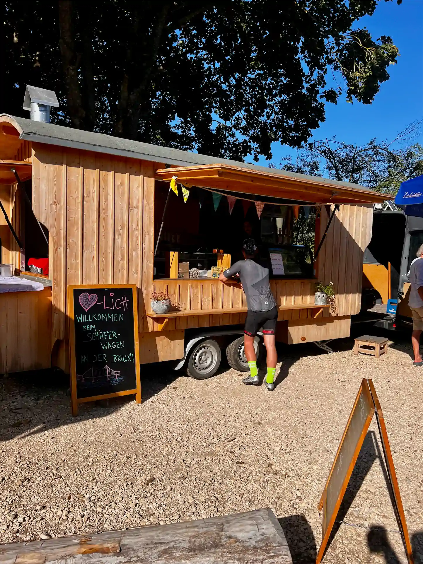 Schaut doch mal, ob die Radlerrast am Schäferwagen an der Brücke bei Obereichstätt geöffnet ist.