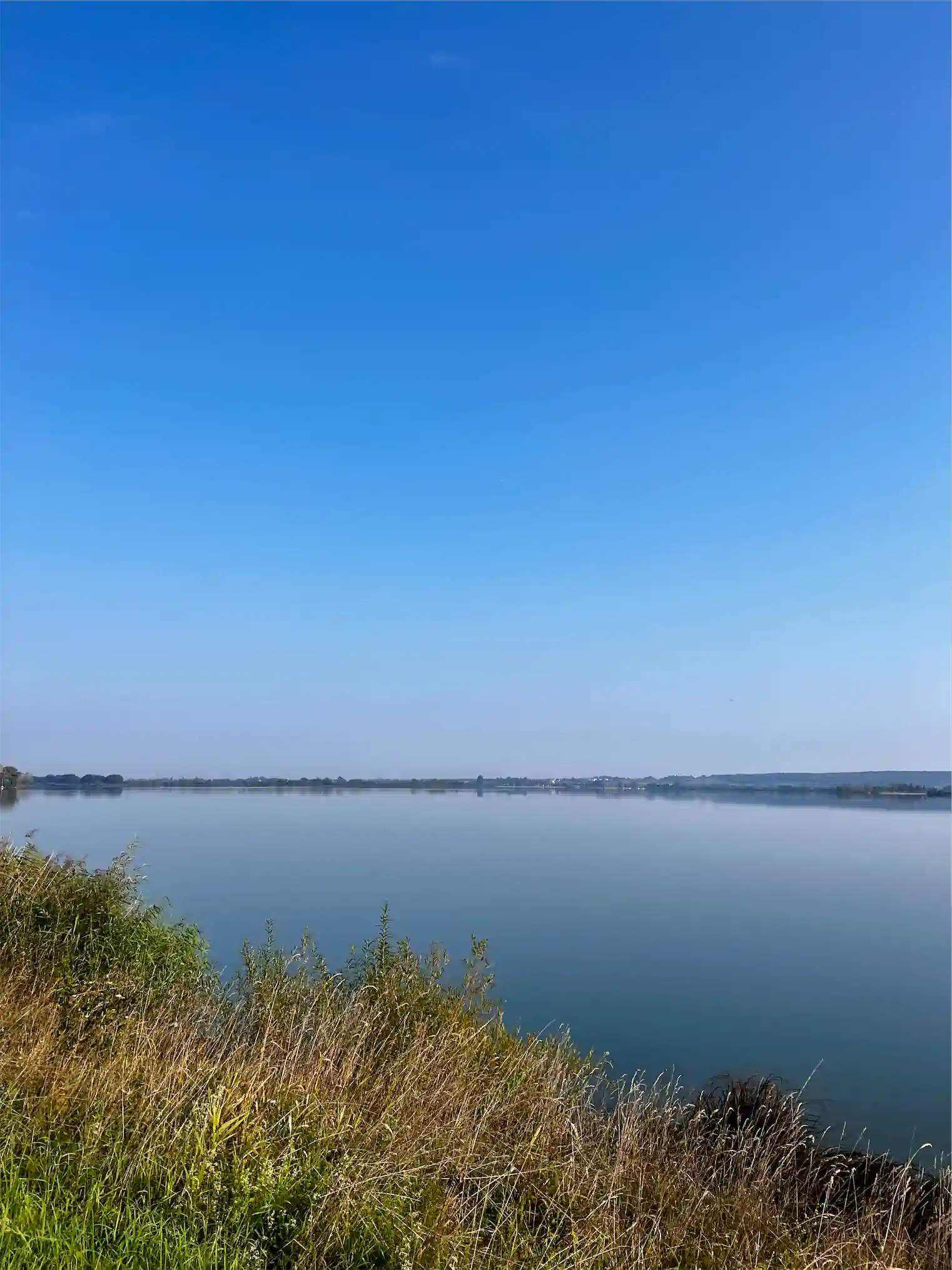 Man radelt am See entlang, der morgens noch ruhig und leer ist. War eine sehr besondere Stimmung dort. Dieser Abschnitt ist wirklich sehr schön. Über dem Wasser war noch etwas Dunst, es war windstill, tolle Spiegelungen auf dem Wasser. Ich liebe das.