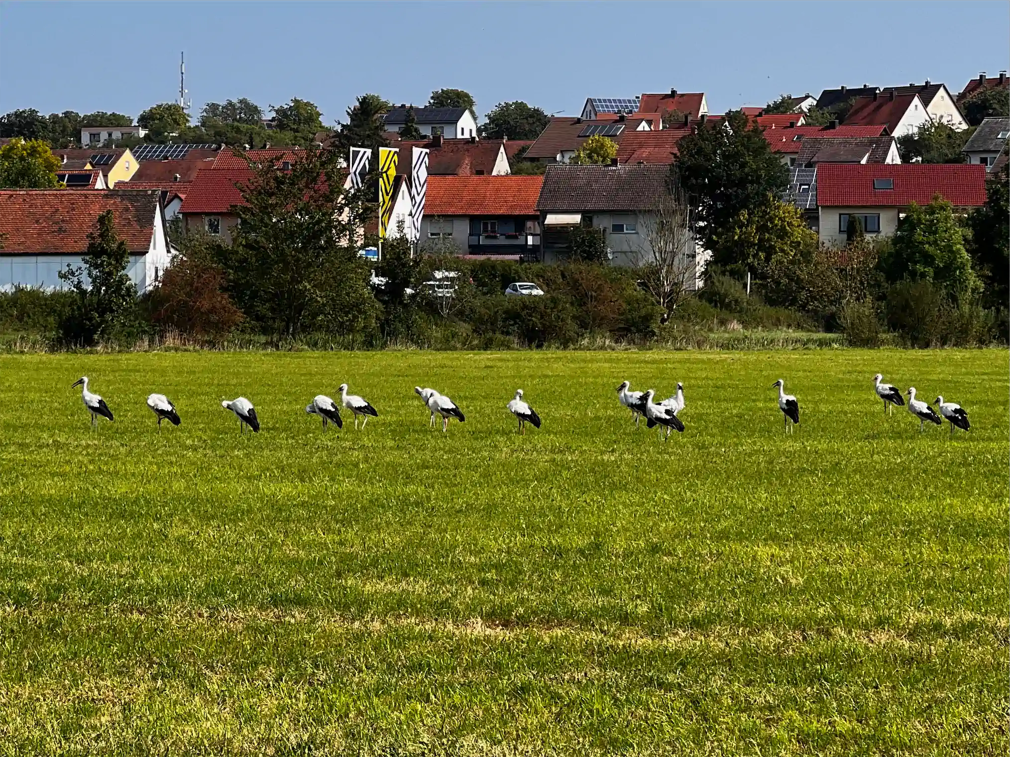 Auf dem weiteren Weg Richtung Oberdachstetten kam ich an einem Feld voller Störche vorbei. Sie haben sich zum Glück inzwischen wieder sehr im Land verbreitet. So viele auf einem Fleck habe ich aber bisher noch nicht gesehen.