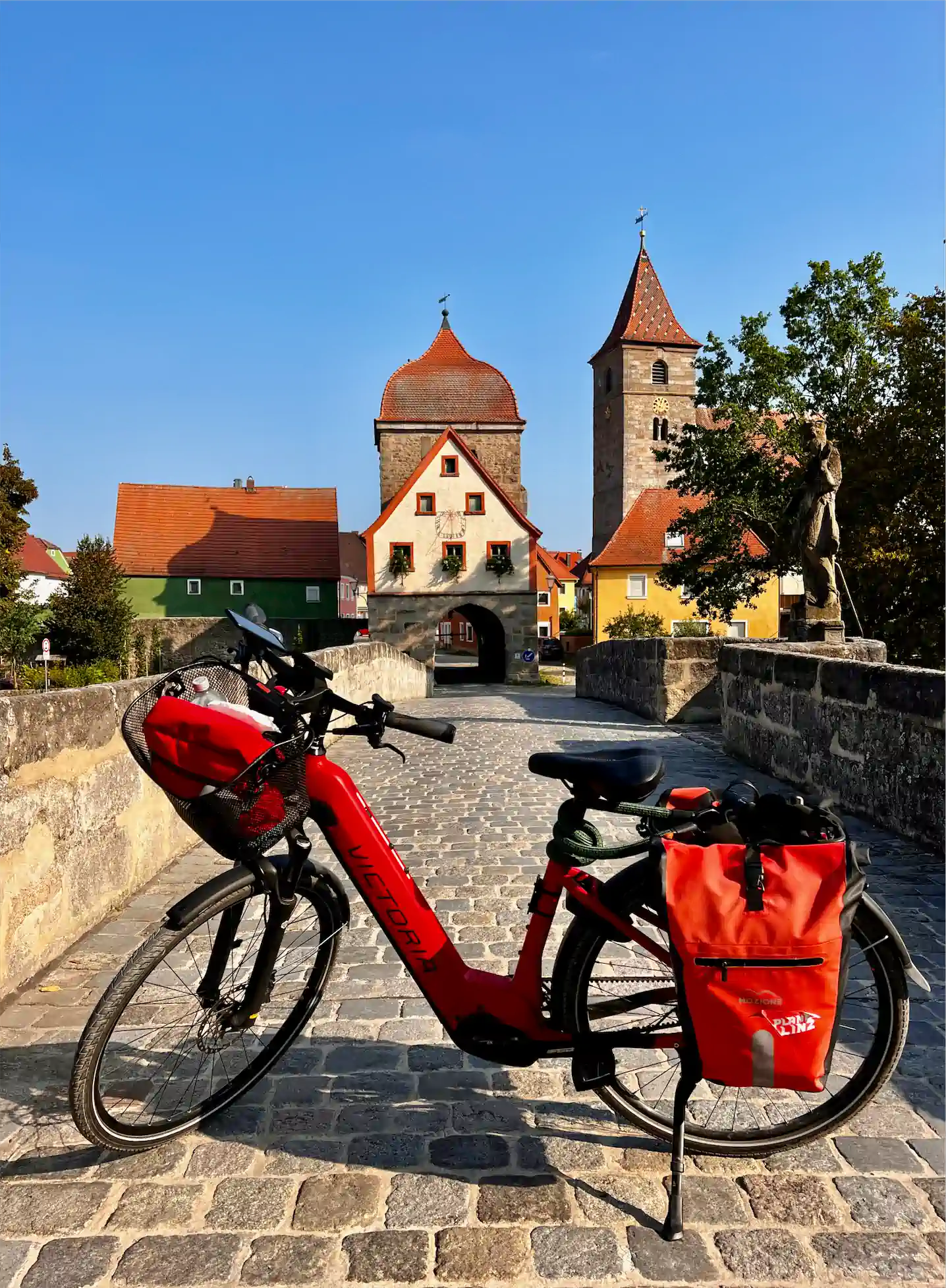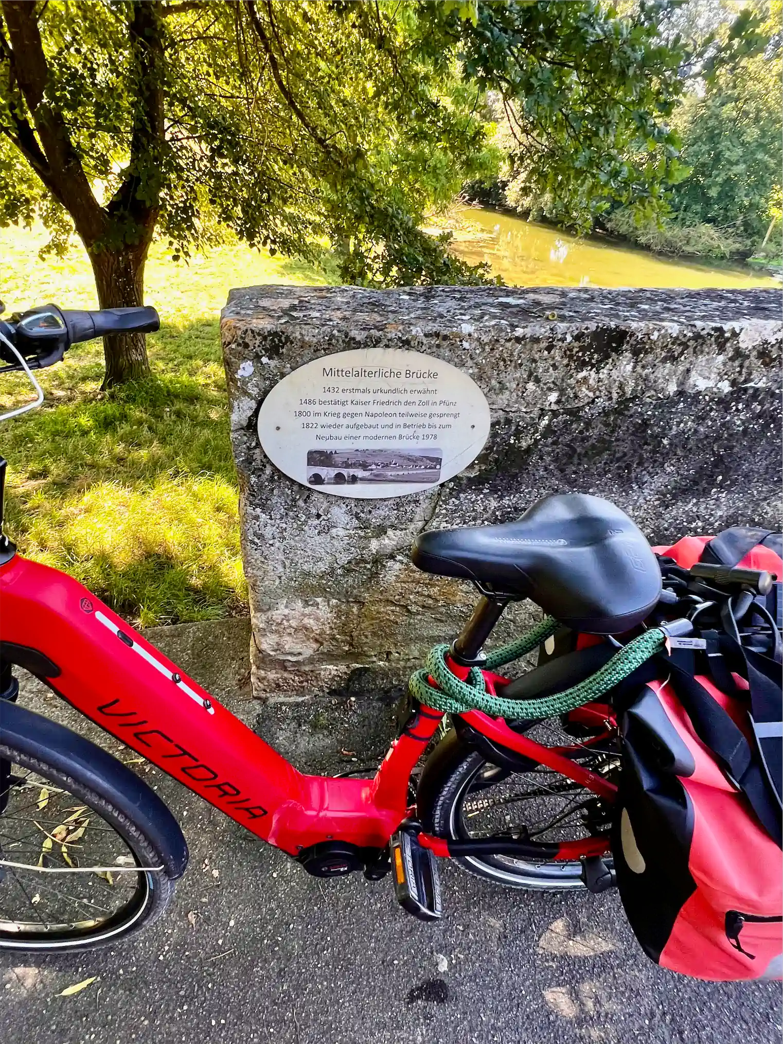 Ich war zur IAA mobility in München, hatte das Rad schon auf dem Träger dabei, und habe mich dann nach der Messe in Beilngries aussetzen lassen. Den Ort kannte ich schon von meiner allerersten längeren Radtour, denn er liegt auch auf dem 5 -Flüsse-Radweg.