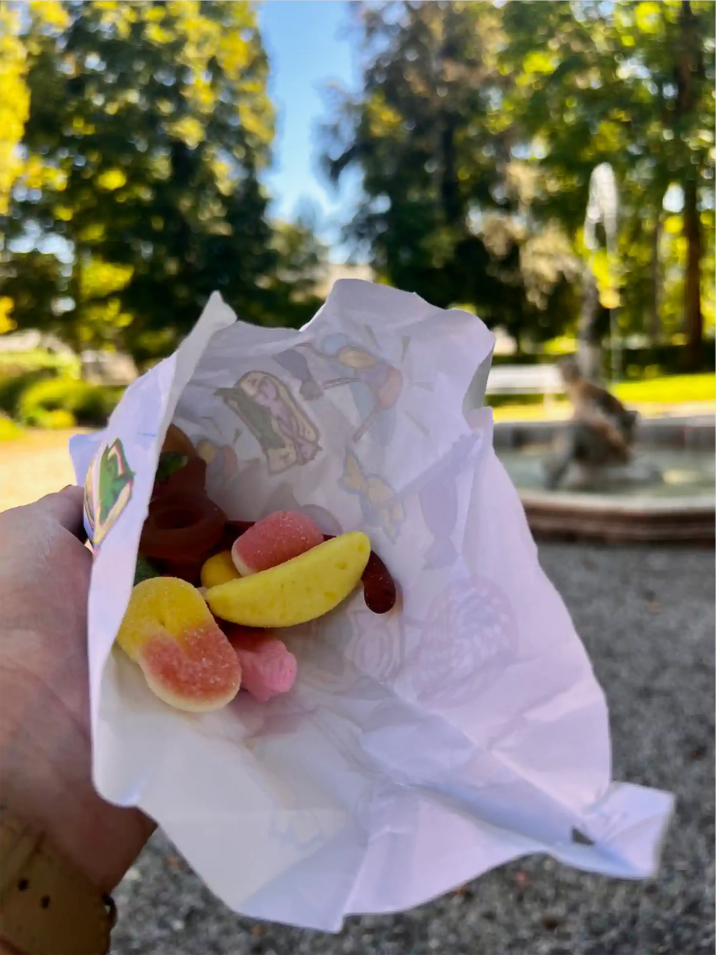 Es gibt Getränke, Snacks, leckeren Kuchen usw. Das Kind in mir konnte dort nicht fort, ohne eine der bunten Wundertüten mitzunehmen. Throwback Moment in die Kinderzeit, als man diese Tütchen an jedem Kiosk für ein paar Pfennig kaufen konnte.
