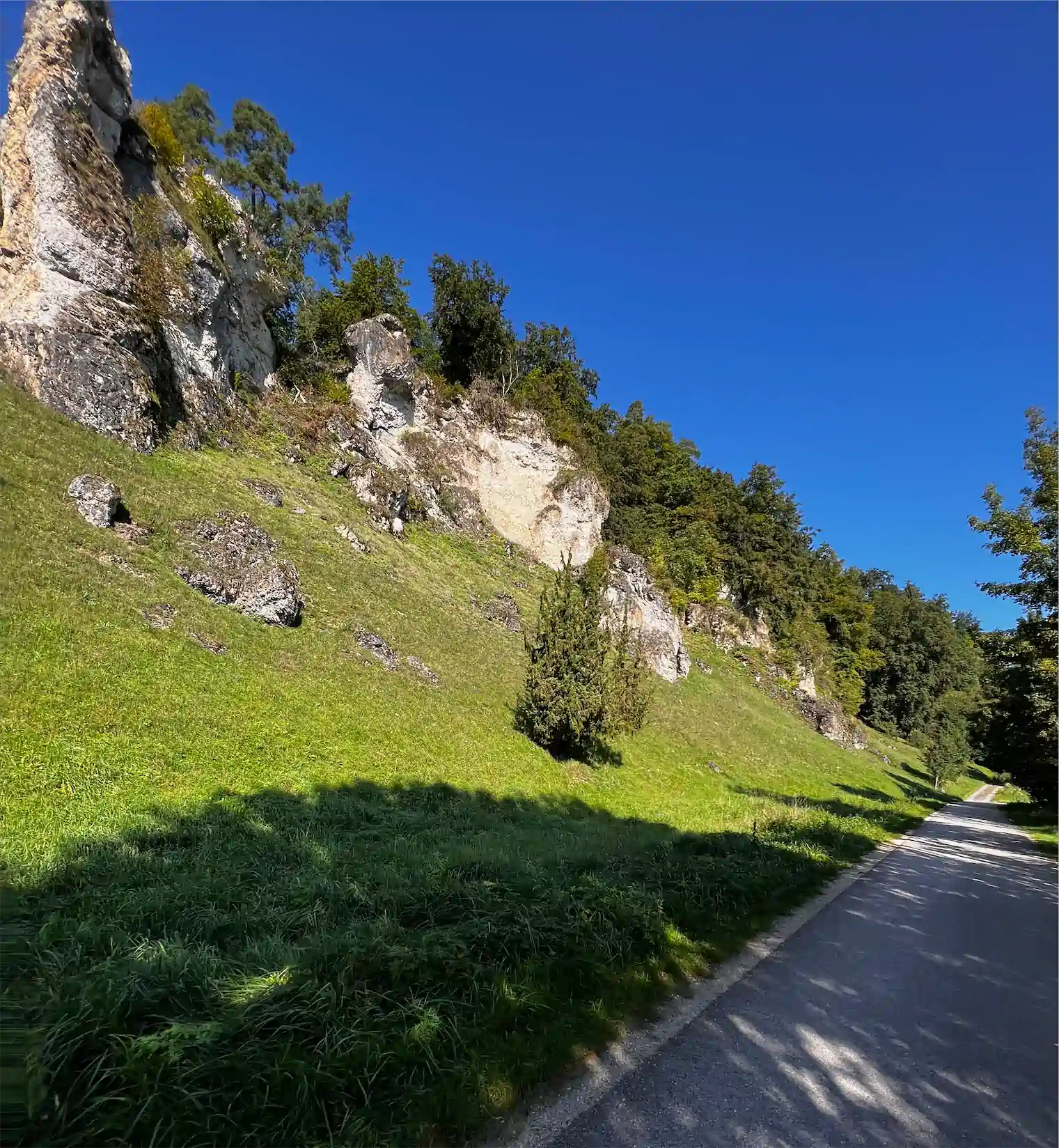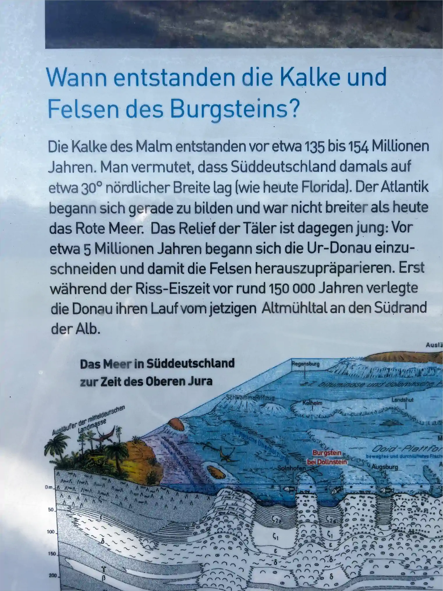 Die Reste davon sind die vielen Kalksteinfelsen, die wie Klippen am Wegrand stehen, für die das Altmühltal bekannt ist. Sehr faszinierend.
