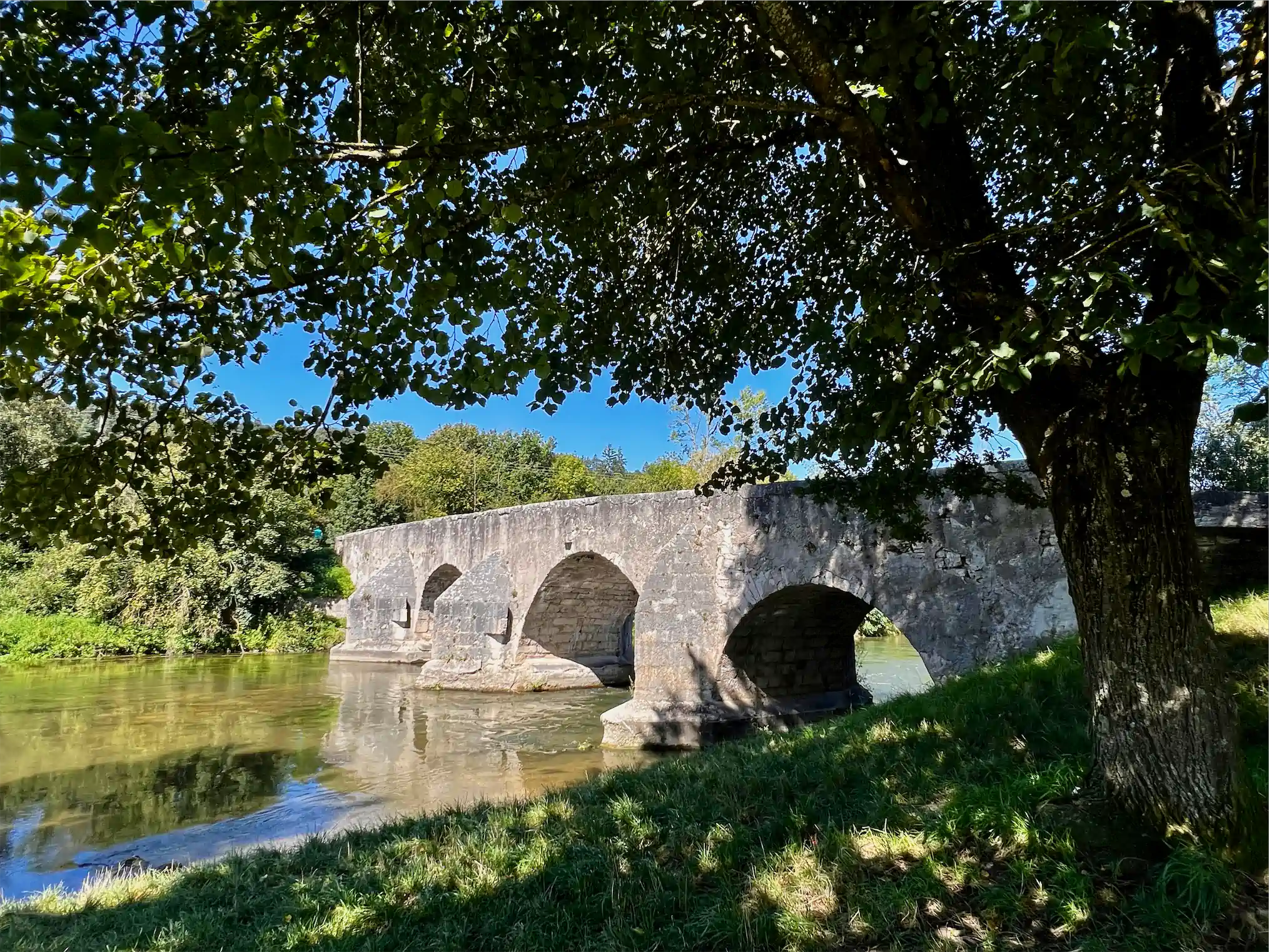 Man radelt über eine urige Brücke aus dem Mittelalter in die kleine Altstadt hinein und am anderen Ende wieder hinaus.