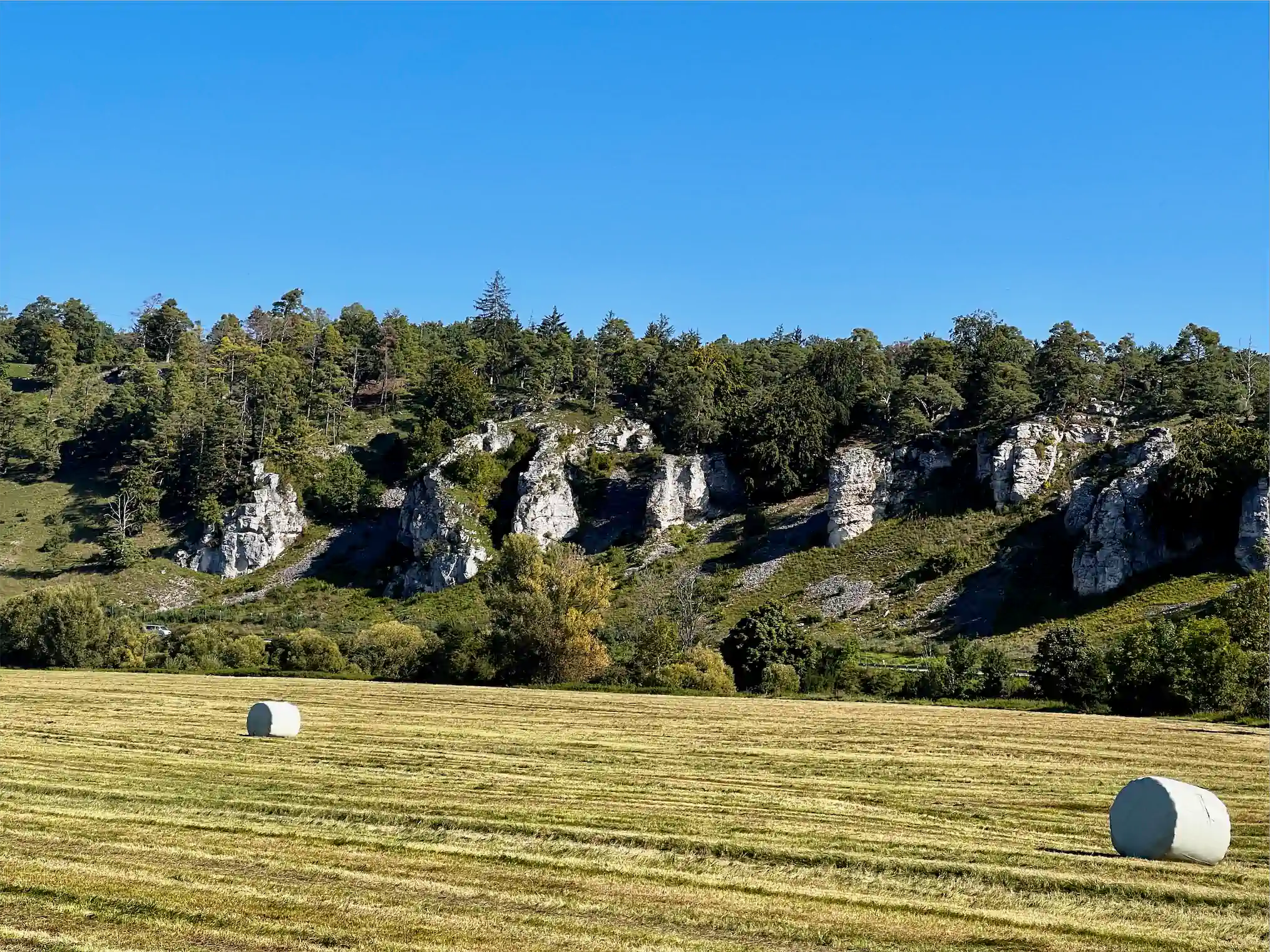 Irgendwann tauchen die ersten Felsen auf. Früher war ja im Tal eine Art süddeutsches Meer.