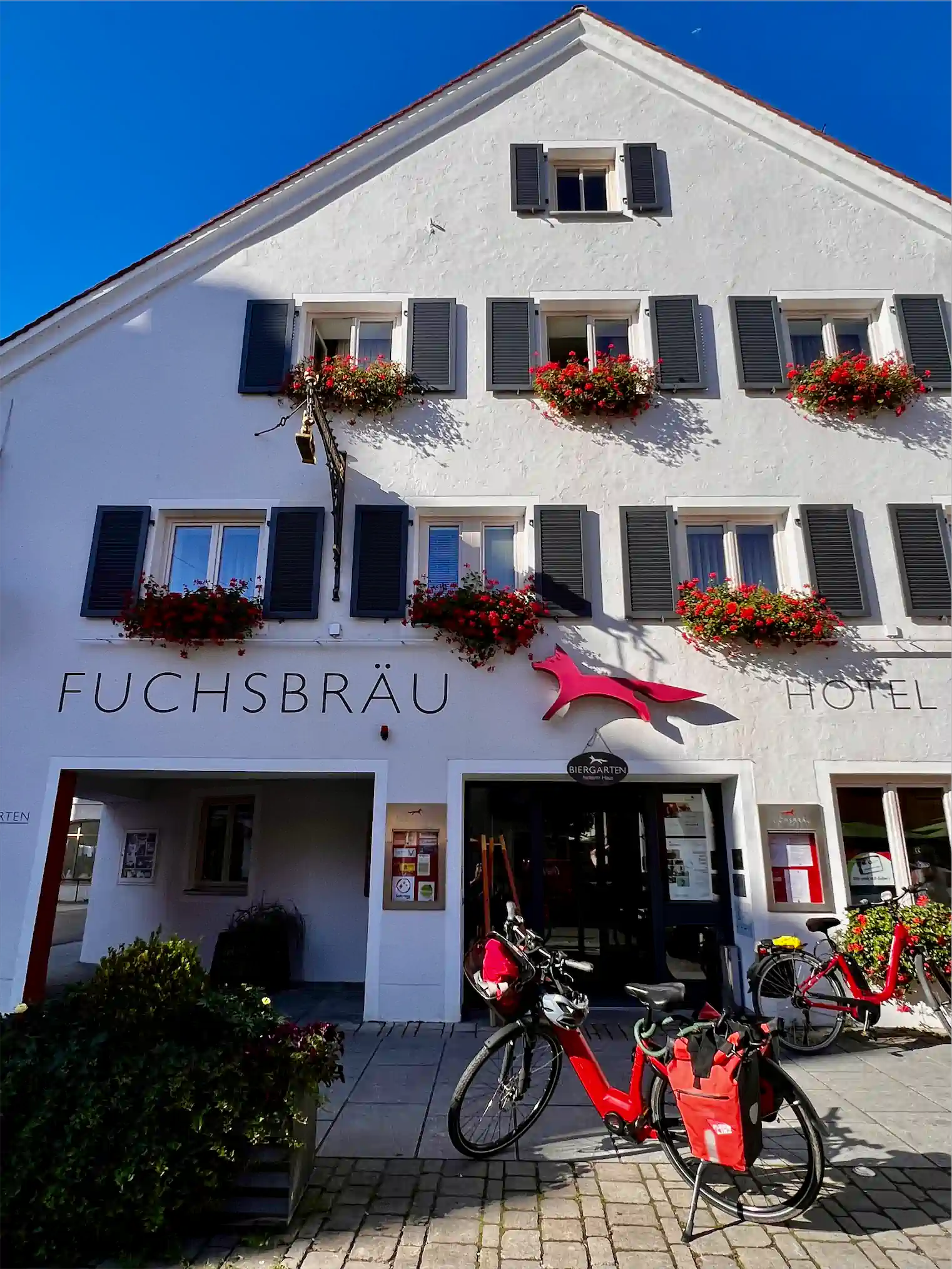 Diesmal war mein Zimmer gleich gegenüber, beim "Fuchsbräu". Beide Häuser sind sehr nett und zu empfehlen. Der Fuchs ist es einfach etwas größer. Es gibt bei beiden einen schönen Biergarten, leckeres Essen und natürlich auch Garagen für die Fahrräder.