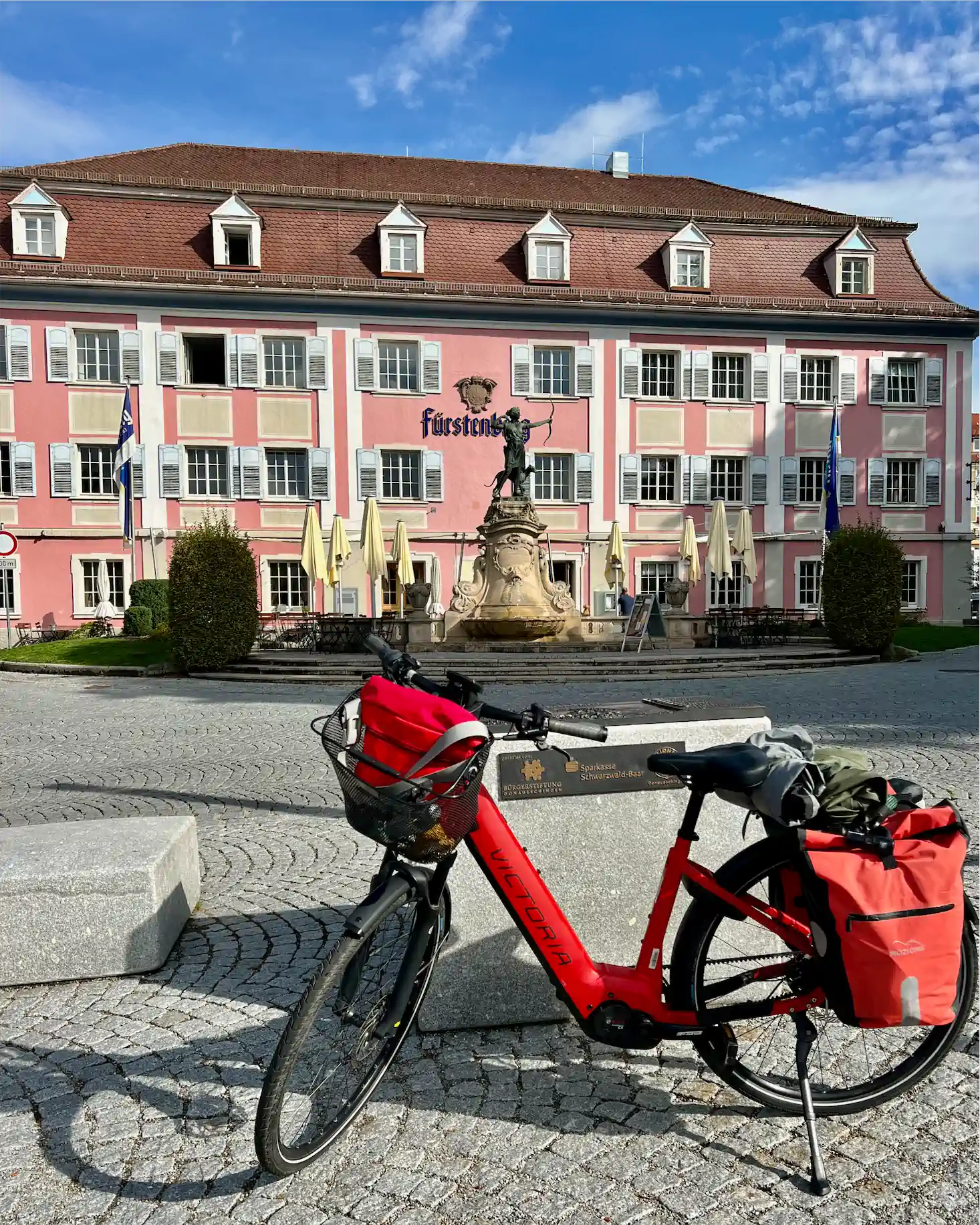 In Donaueschingen gibt es am Ortseingang in der Fürstenbergstrasse einen kostenlosen Parkplatz. Dort kann das Auto stehen bleiben, man ist in 5 Minuten an der Donauquelle und dem Einstieg auf den Radweg.