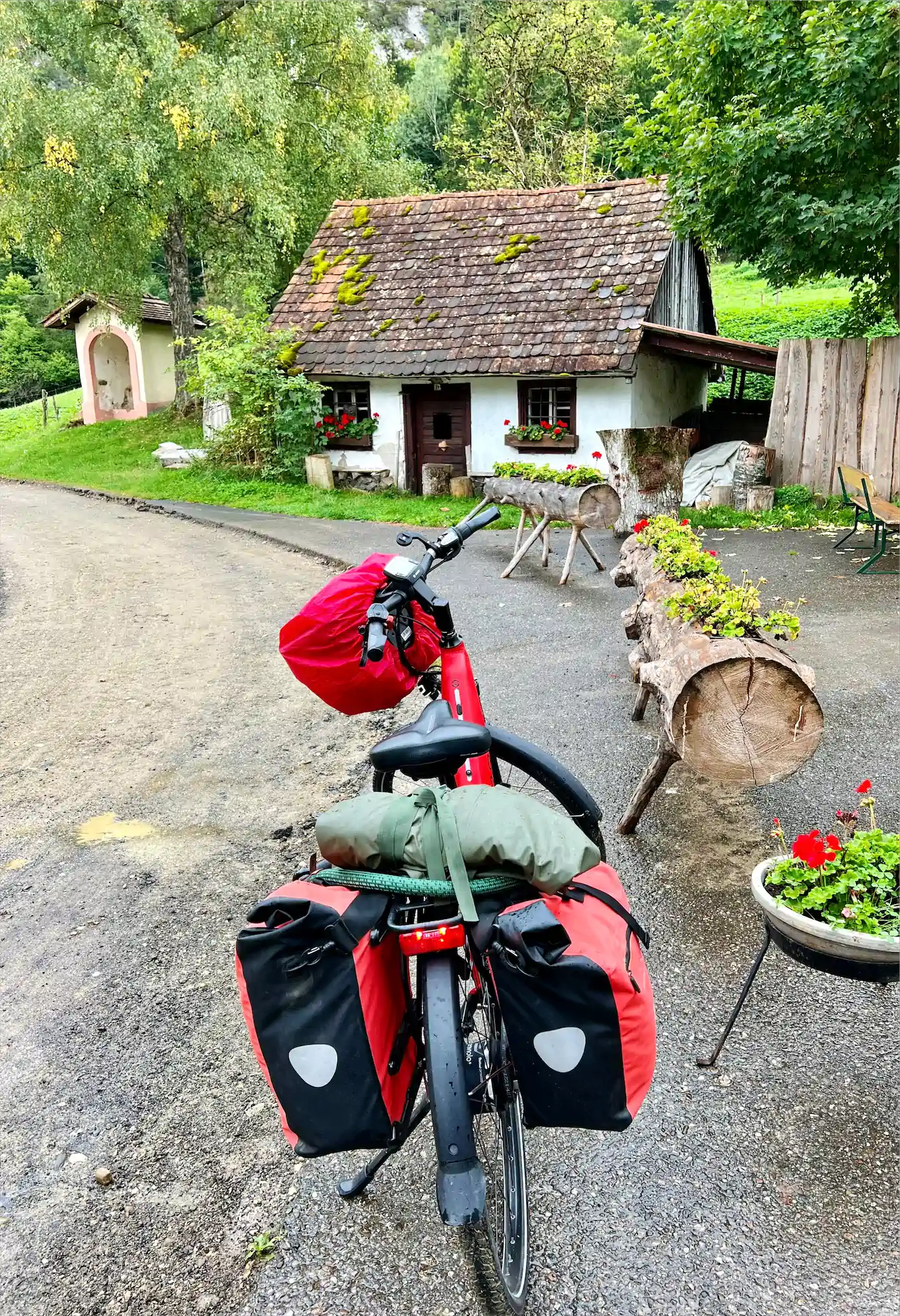 aufgeladen und am nächsten Morgen aufgepumpt und abfahrbereit wieder vor´s Haus geschoben. Beim Frühstück gab es auch noch ein paar gute Tips zur Strecke. So wunderbare Gastgeber kann man doch sehr gerne weiterempfehlen.