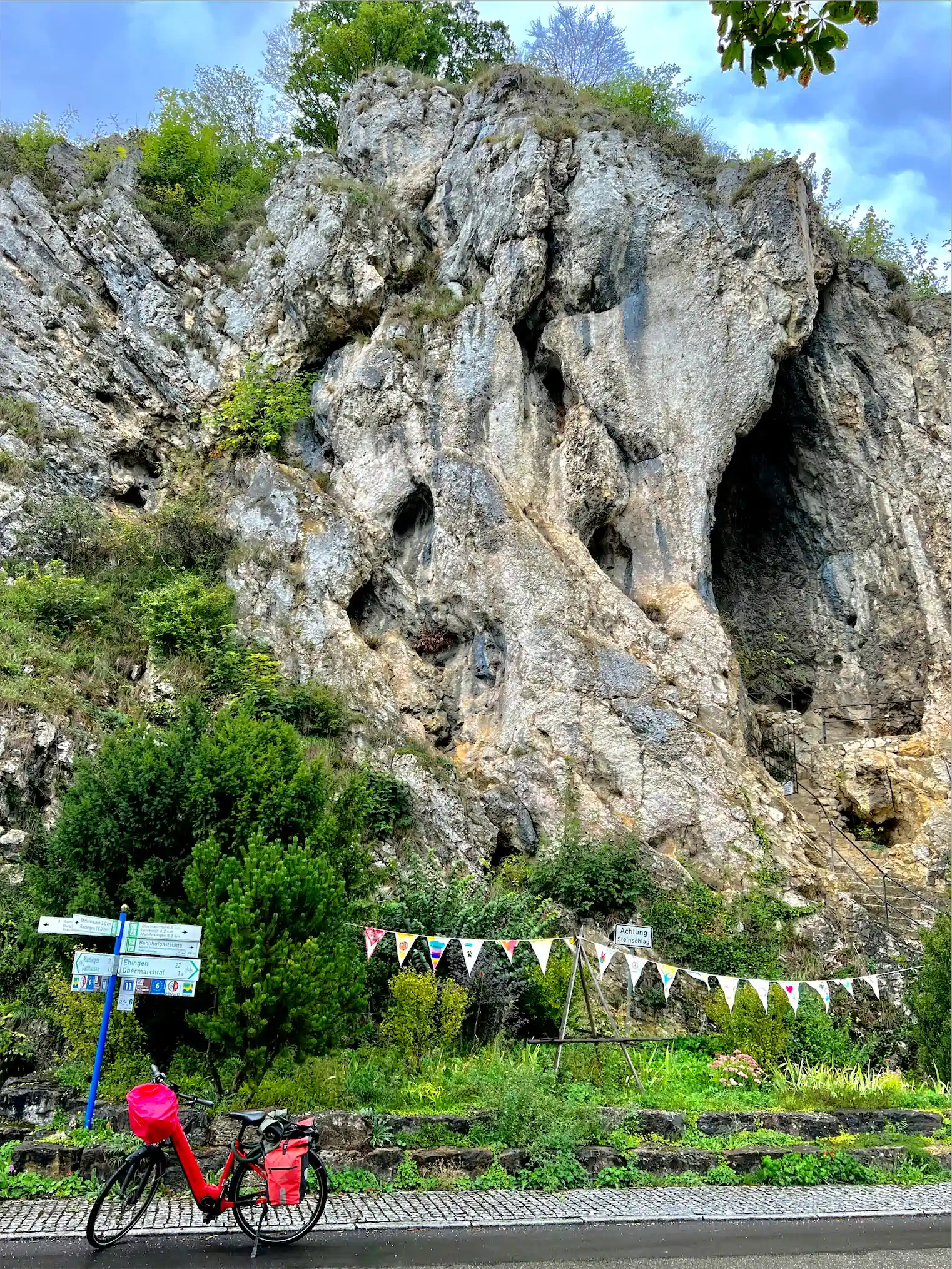 Weiter ging es auf dem Donauradweg gut 73 km bis nach Ulm. Diese Etappe fand ich nicht so spannend wie die beiden vorherigen. Kurz vor Datthausen gibt es einen kurzen, aber richtig krassen Anstieg: 20% Steigung werden angezeigt, Radfahrer werden zum schieben aufgefordert. Wer es auf dem Rad hinauf schafft, kann sich freuen, schlimmer wird es nicht mehr. In Rechtenstein findet Ihr eine große Höhle direkt am Weg.