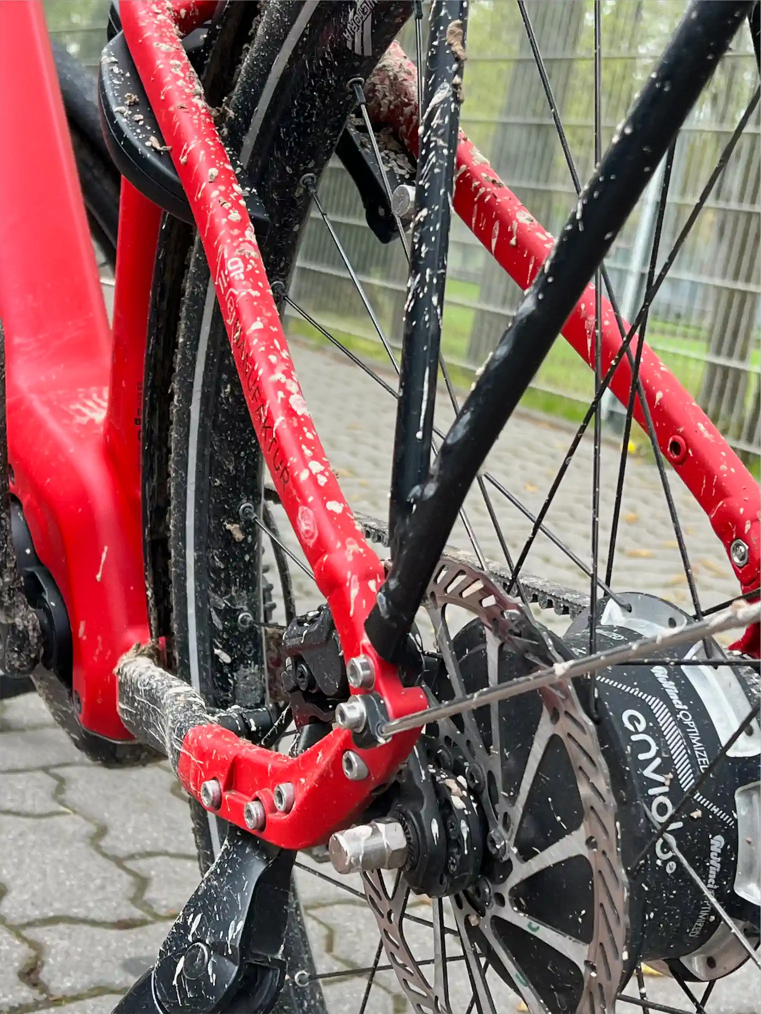 Bitte geht nicht mit einem Hochdruckreiniger ans Rad, wenn es nicht unbedingt nötig ist. Der hohe Wasserdruck bringt Wasser an Stellen, wo es nicht hingehört und normaler Regen es auch nicht hinbringt, z.b. in die Tiefen des Antriebs. Ich nehme den Kärcher nur, um den Dreck unter den Schutzblechen raus zu bekommen. Die sitzen bei meinem Rad sehr eng an den Reifen, so daß Schmutz nur mit hohem Wasserdruck zu entfernen ist.