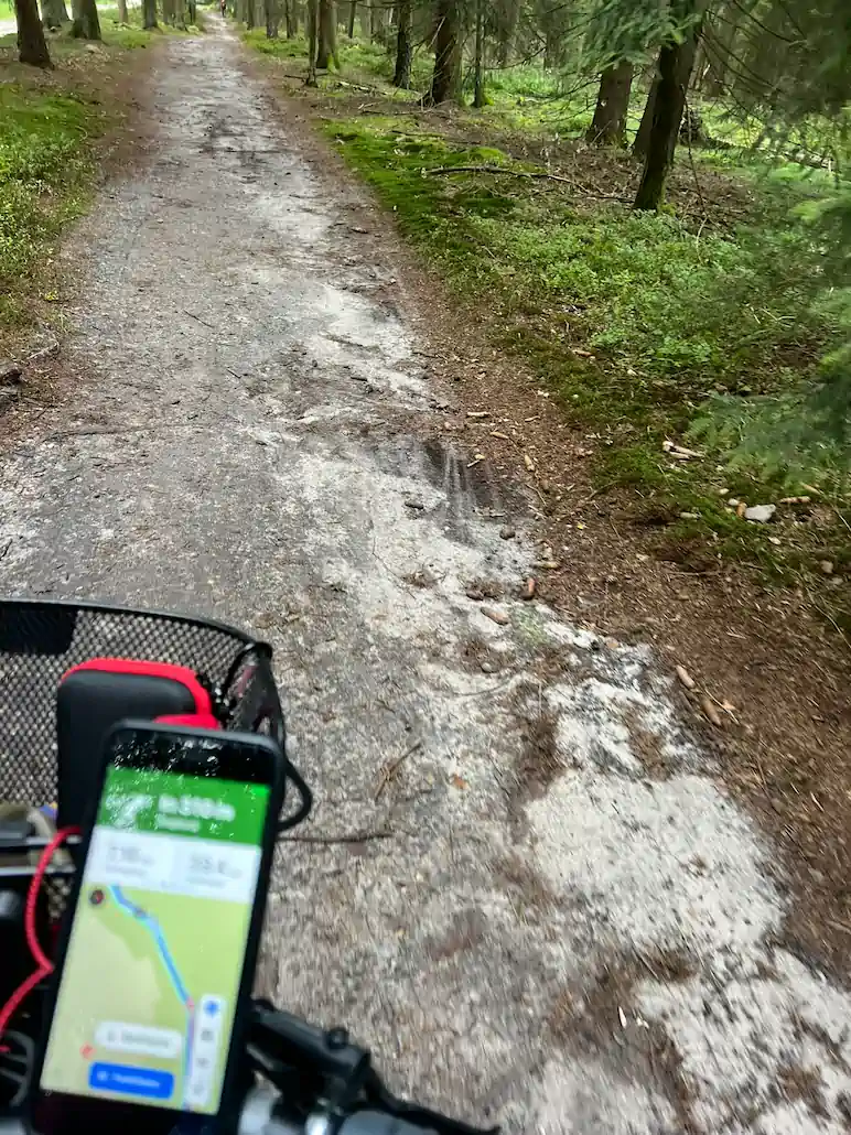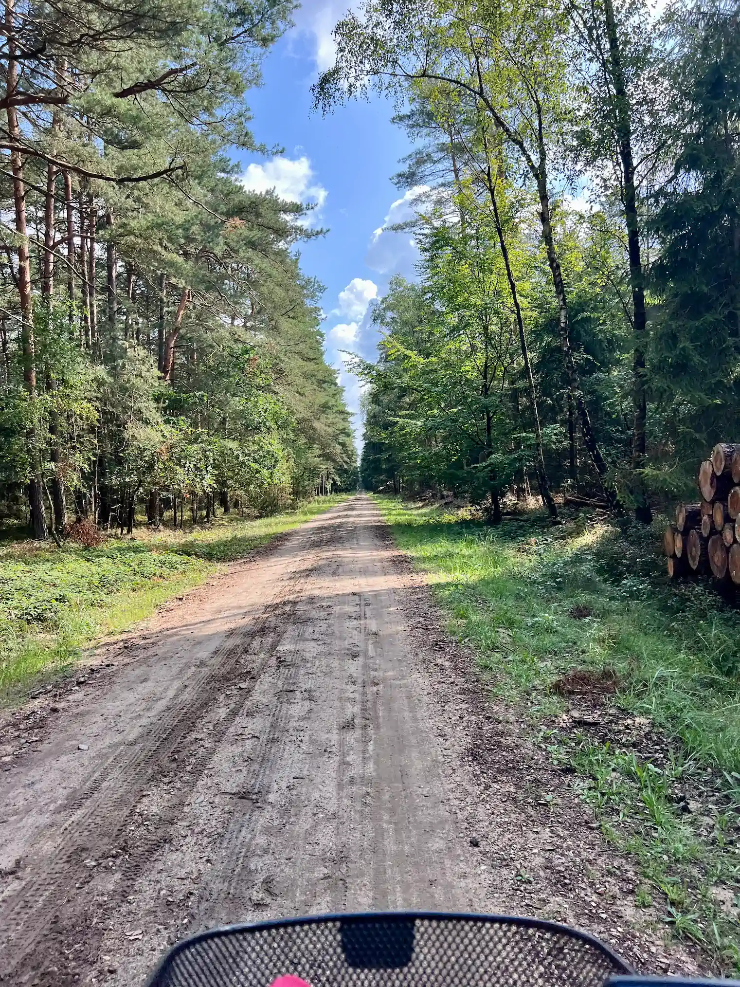 Die Wege sind oft sandig, durchsetzt mit großen Steinen oder Wurzeln, Ihr müsst wirklich aufmerksam fahren und mit allem rechnen. Nach Regen kann es auch matschig werden, besonders in den Wäldern. Waldwege führen oft auf sehr rumpeligem Untergund ewig lang schnurgeradeaus durch die Einsamkeit. Ihr könnt die Stille genießen oder etwas singen,