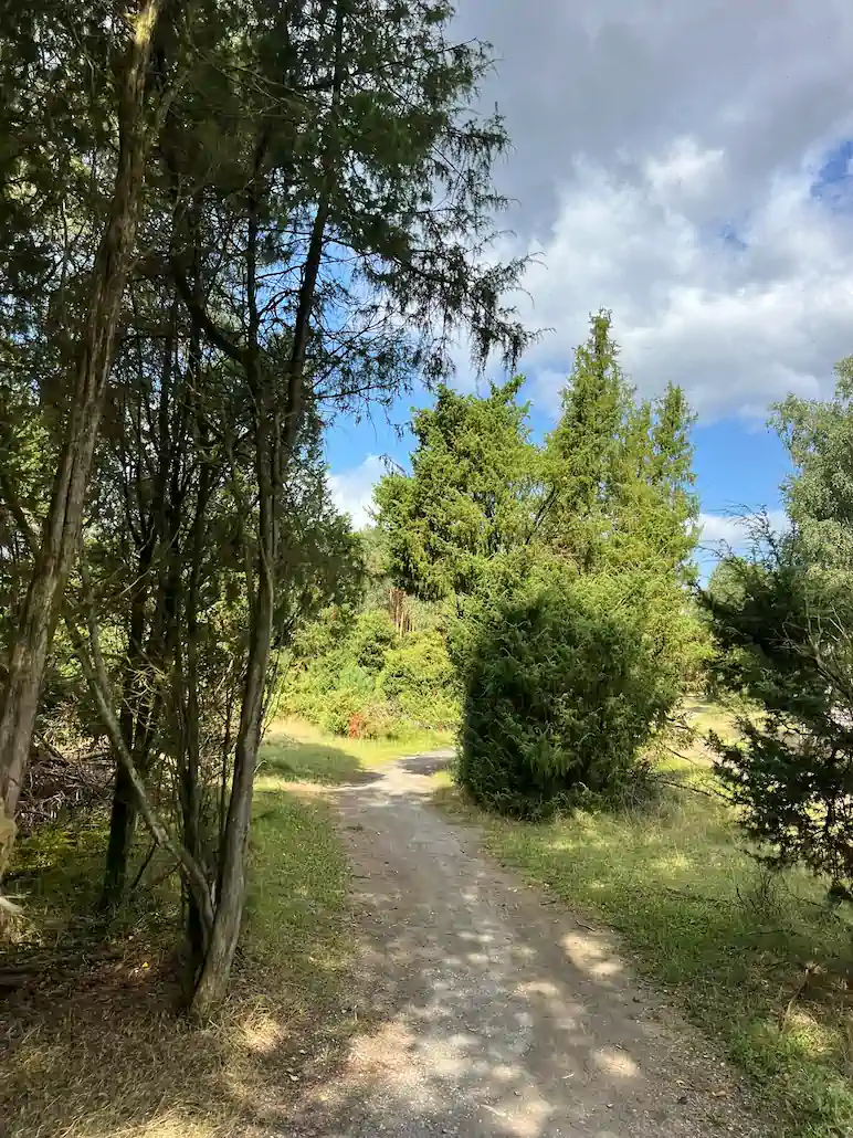 Man radelt auch eine Weile auf dem Radweg neben der Landstrasse, bis man wieder auf einen Waldweg abbiegt, der sehr idyllisch und gut zu befahren ist. Der Weg führt weiter zum Wacholderwald und zur nächsten Heidefläch bei Unterlüß.