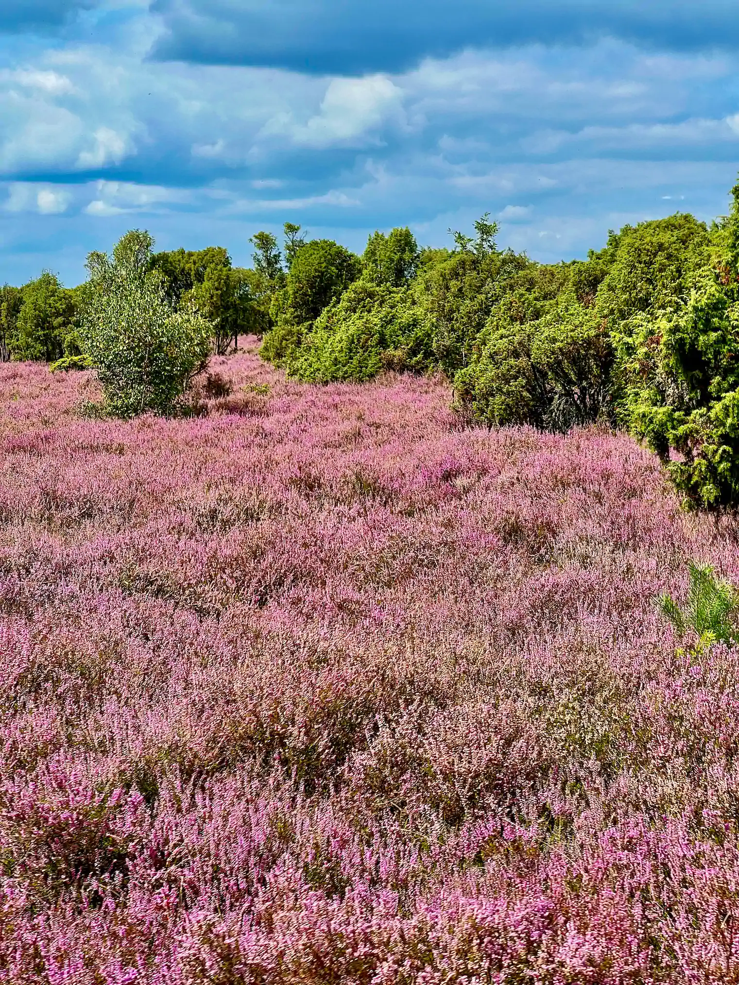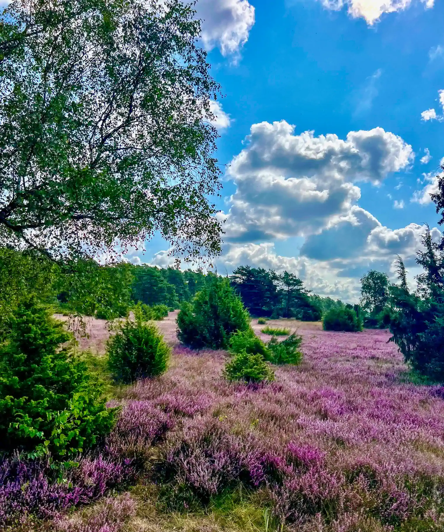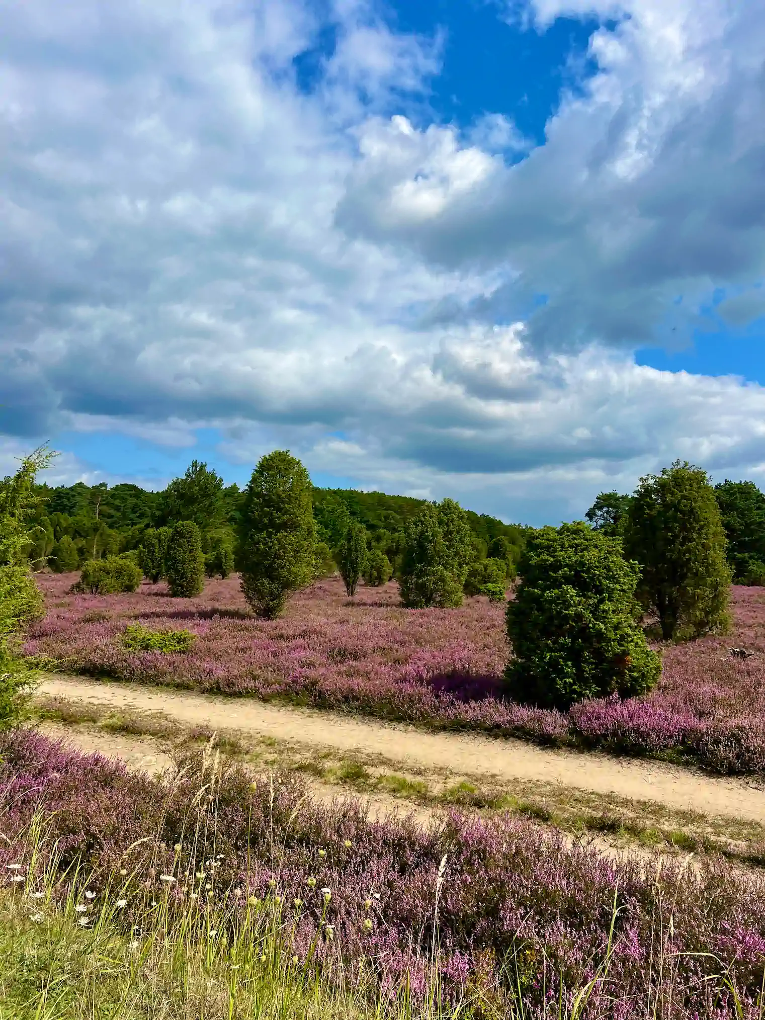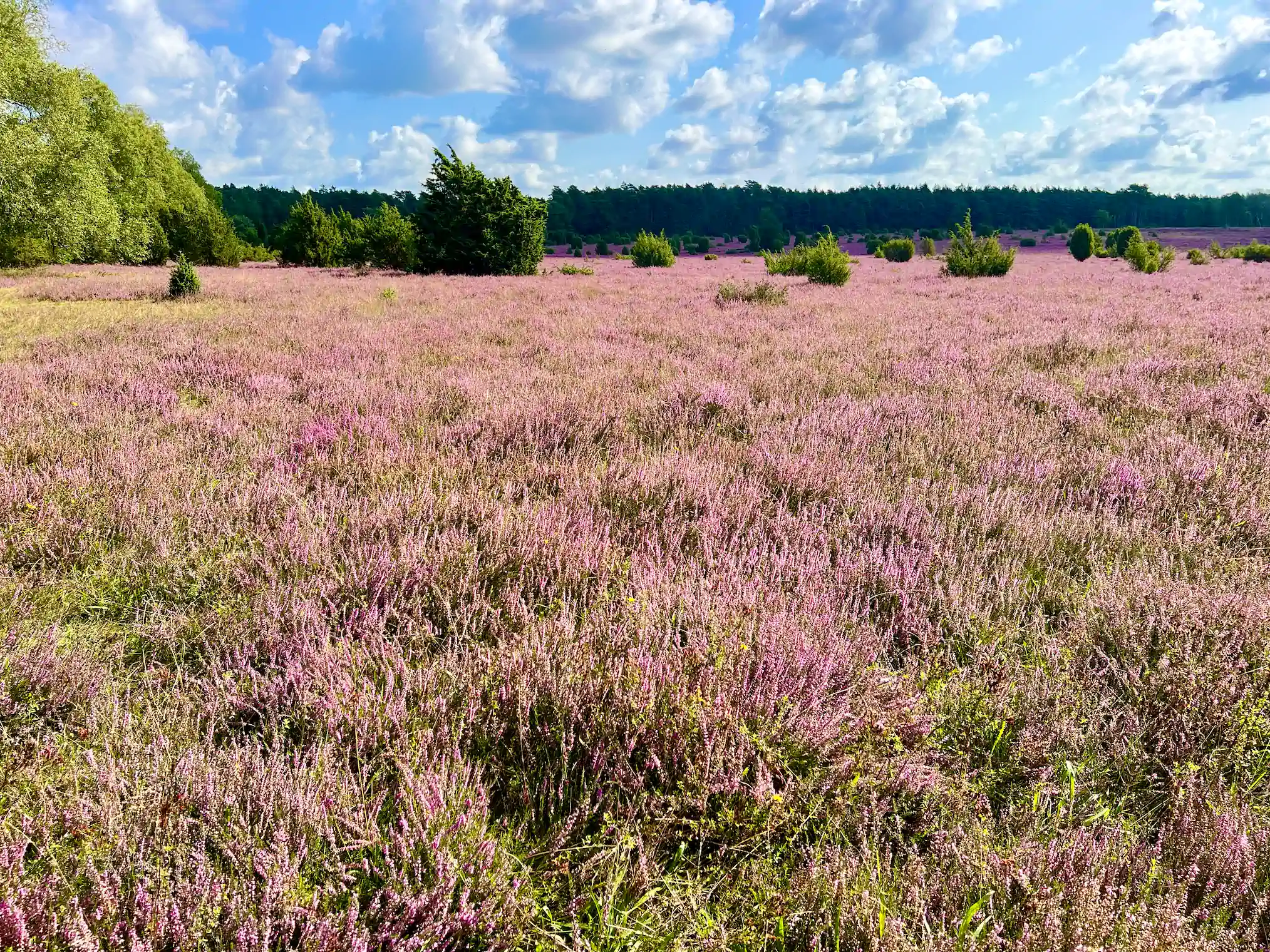Die Blütezeit im Naturpark Südheide ist sicherlich eines der schönsten Naturschauspiele, das man in Deutschland erleben kann. Jedes Jahr blühen die Heideflächen für einige Wochen in den herrlichsten Lila Tönen, durchtupft von grünen Wacholderbüschen und gelben Sträuchern. Es ist wirklich ein Traum, den man gesehen haben muss.