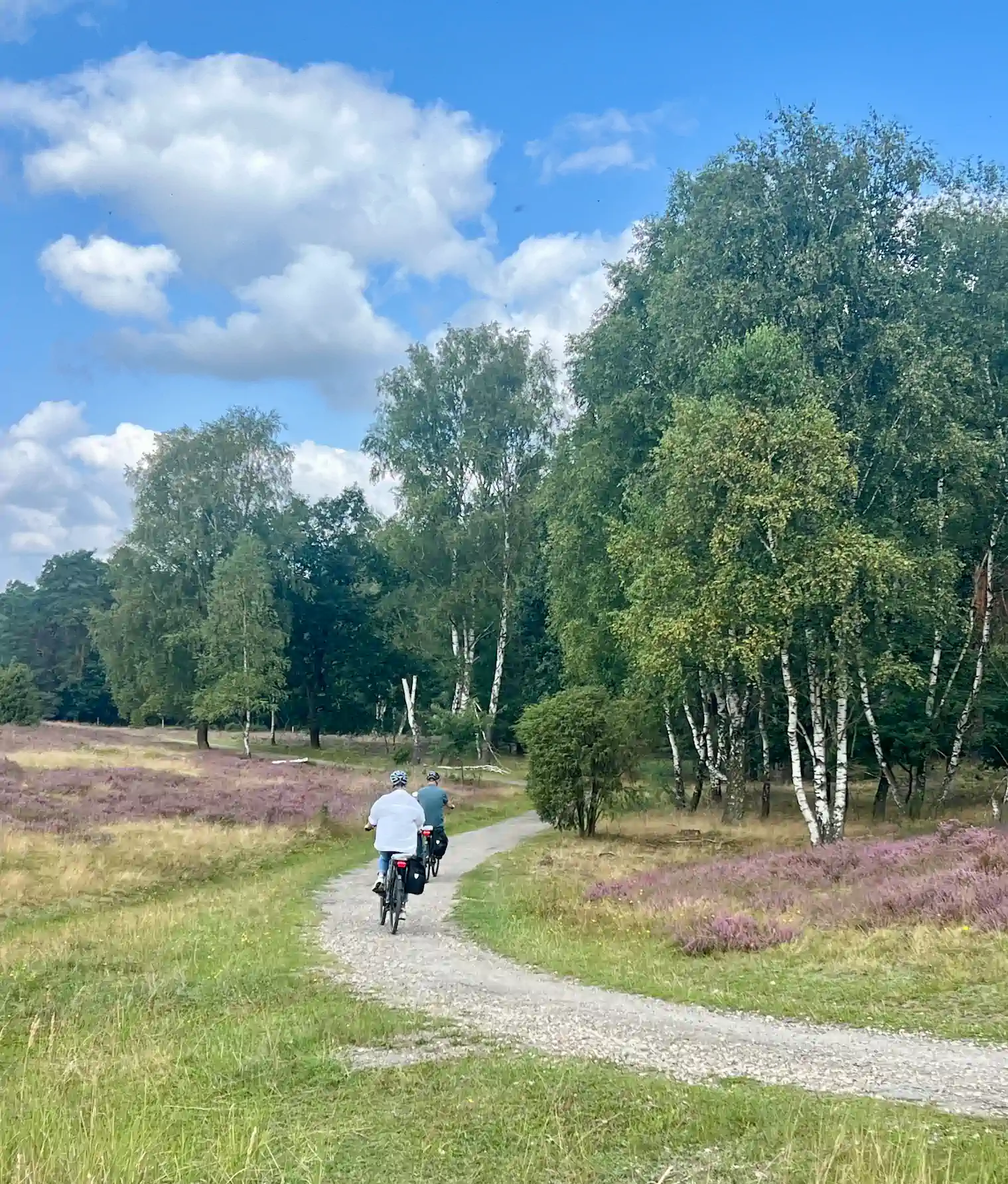 Vom Parkplatz in Undeloh radelt man auf dem Fußgängerpfad Richtung Wilseder Berg.
