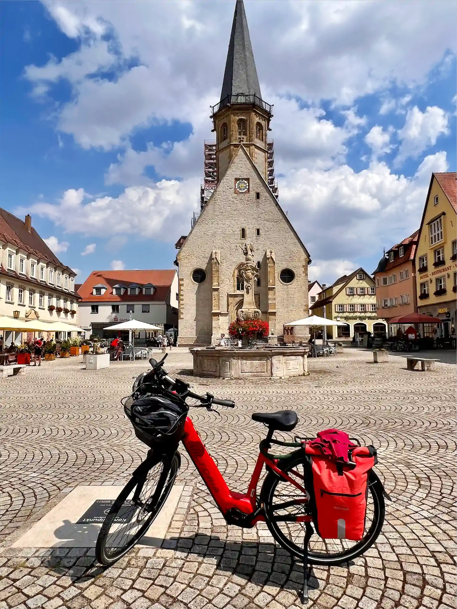 Die Route führt wieder durch Weikersheim. Dort könnte man etwas Zeit für einen Kaffee oder ein Eis auf dem Marktplatz einplanen.