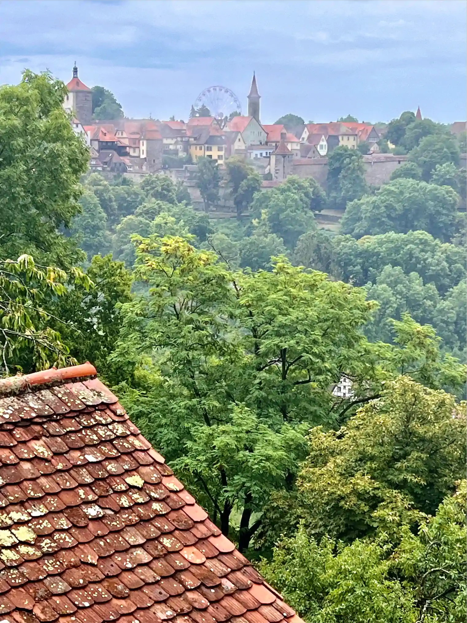 Der anschließende Rundgang in der langsam trocknenden Altstadt war wirklich interessant. Die hübschen Häuser der Altstadt sind so fotogen. Obwohl die halbe Altstadt im Krieg zerstört und vieles erst danach ganz neu aufgebaut wurde, sehen die Häuser sehr mittelalterlich aus. Beim Blick von der Stadtmauer konnte man im Tal dicke Nebelschwaden aufsteigen sehen, sehr mystisch.