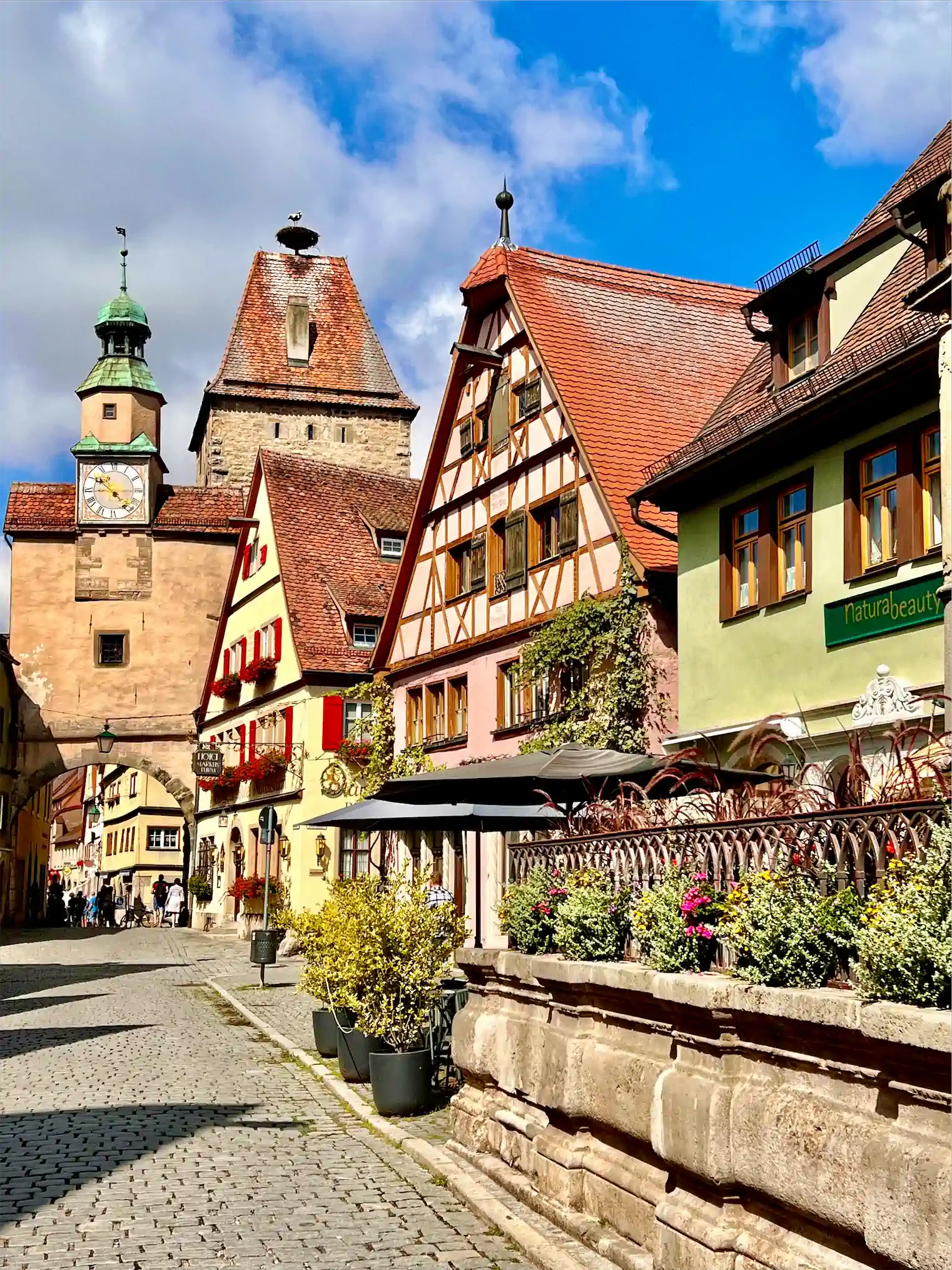 Man kann dort auch draußen sitzen, und sogar übernachten. Schaut Euch mal die hübsche Dornröschen Suite dort an. Ich denke, das wäre mein nächstes Quartier, falls ich nochmal nach Rothenburg komme.